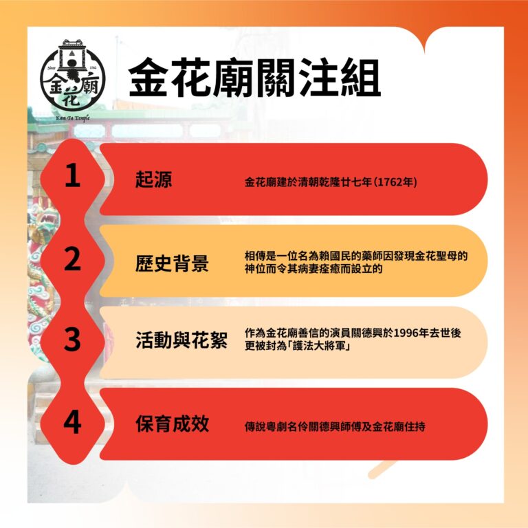 (3) 設立跨部門統籌小組,統領地政總署、民政及青年事務局、華人廟宇委員會等不同政府部門正規化金花廟。